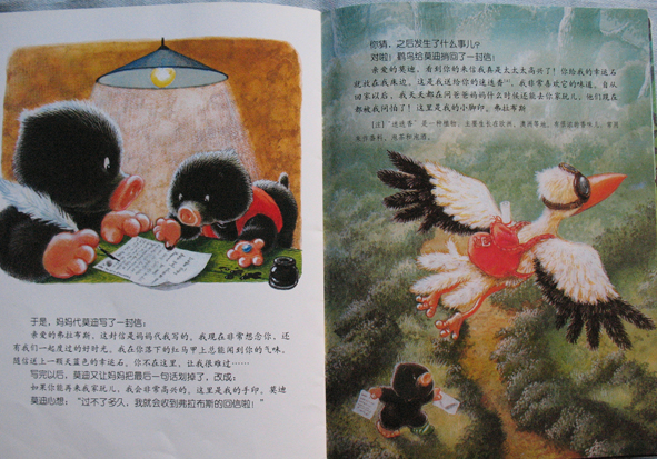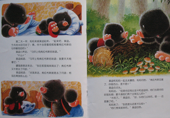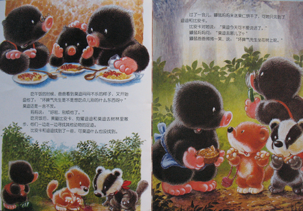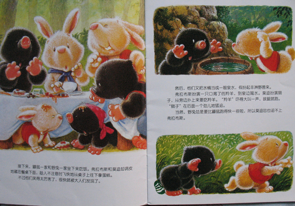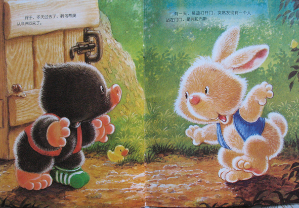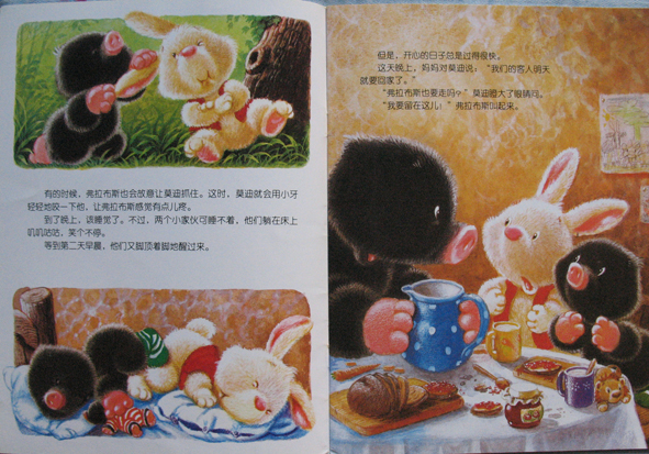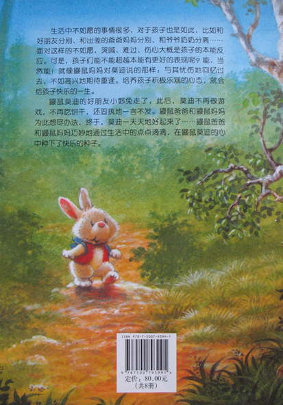 呵呵!这次和大家分享的有关小动物的书是《小熊布迪亲子阅读之快乐的说再见》哦!是由中国少年儿童新闻出版总社 中国少年儿童出版社出版的。生活中不如愿的事情很多,对于孩子们也是如此哦!比如和好朋友分别、和出差的爸爸妈妈分别、和爷爷奶奶分离.......... 面对这样的不如愿,哭喊、难过、伤心大概是孩子的本能反应。可是,孩子们能不能超越本能有更好的表现呢?能!当然能!就像鼹鼠妈妈对莫迪说的那样:与其忧伤的回忆过去,不如高兴的期待重逢。培养孩子积极乐观的心态,就会给孩子快乐的一生! 这本书讲的内容是:鼹鼠莫迪的好朋友小野兔走了,此后,莫迪不再做游戏,不再吃饼干,还固执的一言不发。鼹鼠爸爸和鼹鼠妈妈为此想尽办法,终于莫迪一天天地好起来了......... 鼹鼠爸爸和鼹鼠妈妈巧妙地通过生活中的点点滴滴,在鼹鼠莫迪的心中,种下了快乐的种子,培养了积极乐观的心态! 本作品未经作者许可不得转载,转载请征求作者意见。擅自转载使用,将保留追究其法律责任的权利! 评分记录
