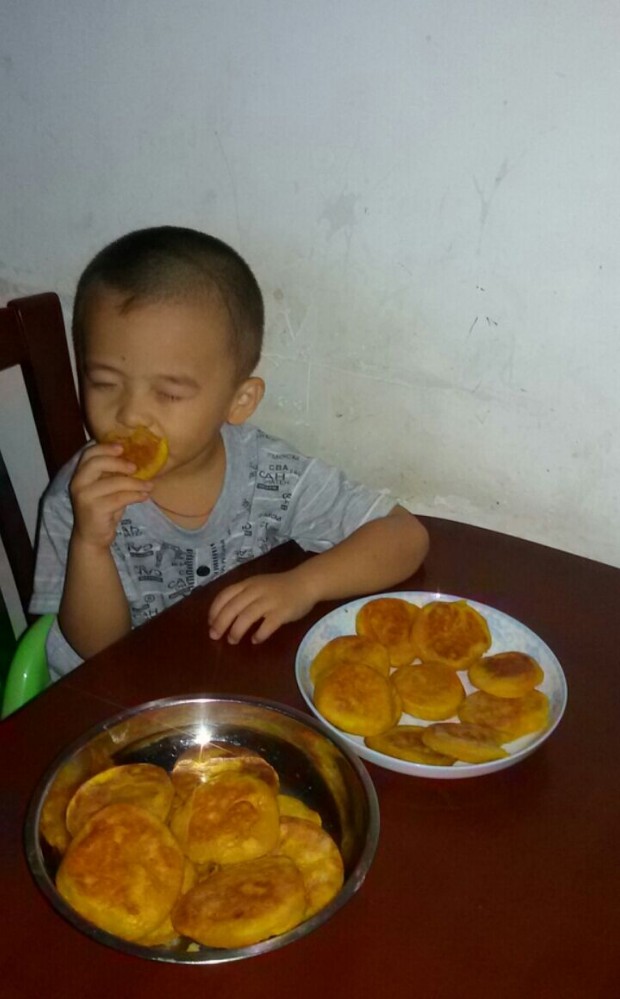 虽然这南瓜饼看起来很普通,但小不点特别的喜欢吃,不但早餐时吃它,午饭的时候也吃它,直接把南瓜饼当午餐了,宝爸看到小家伙这么喜欢后就说要回乡下去拿南瓜回来继续做呢。