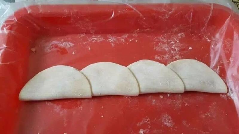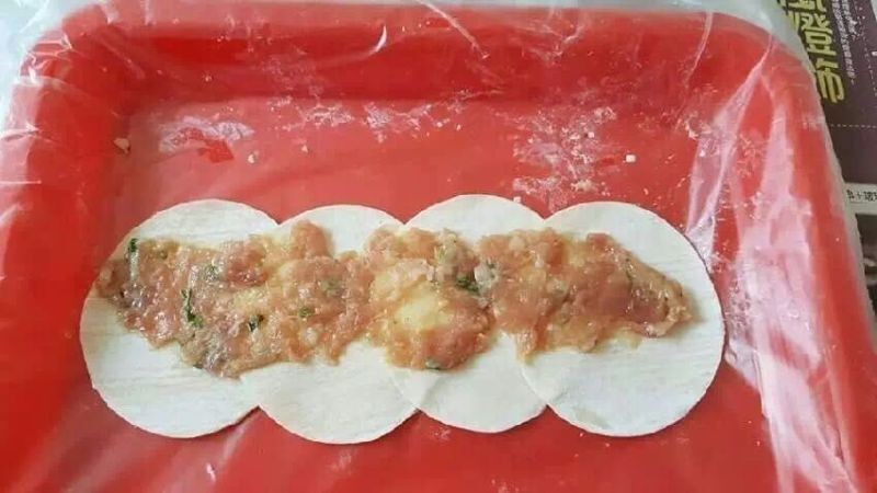 最近研究美食上瘾呀,美食我就翻看大家做过的美食帖,突然一个妈的做法吸引了我,感觉挺不过的,很有创意,于是我也打算尝试一下,没想到非常成功,有想的亲也可以来试一试哦。 这次主要做的是一个面食,需要用到饺子皮、饺子馅,当时做出来的却不是普通的元宝饺子,而是跟玫瑰花一样的饺子,大家是不是很好奇呀,接下来我就来揭秘了。 第一步,先将4张饺子皮铺平,在1/3到1/2的位置将饺子皮相叠、抹上一层绞肉