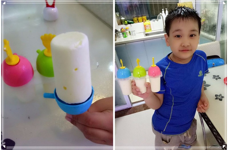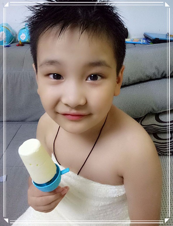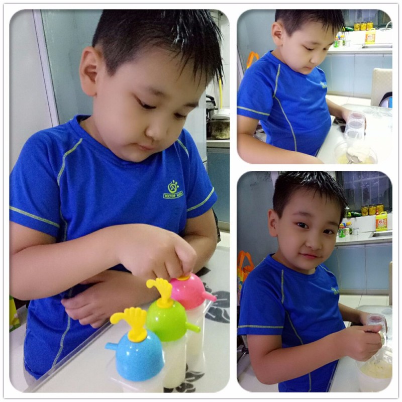 10小时后,Aric打开酸奶机看到完整的酸奶非常满意,品尝了几口点点头说非常好吃。但是Aric却不想只吃酸奶,他想到不如做酸奶冰淇淋?既能吃到酸奶,又能吃到冰淇淋。于是他找来了冰淇淋模具,冲洗干净后用勺子将酸奶倒入模具中,在这个过程中还是需要耐心,因为模具的口比较小,勺子有点大。等装满了三个模具后Aric轻轻的拍了几下,让酸奶可以放得更整齐一些,如果有漏洞冰淇淋就不好看了哦。Aric可是个小完美主义者,这点像妈妈,喜欢把事情做得尽善尽美,自我要求有点高。 冰淇淋等待的时间不久,放在冷冻柜中几个小时就变成了冰淇淋。取出冰淇淋之前他把冰淇淋模具放在冷水下冲了冲,这样可以让冰淇淋很快速的拿出来。等冰淇淋拿在手里了,Aric瞬间自信心爆棚,不住的问妈妈是不是特别好看?比卖的冰淇淋更好吧。我尝了尝,除了酸奶味就是凉,没太多的感觉,不过这全部过程都是Aric自己做的,这一点就非常值得赞扬。从做酸奶到做酸奶冰淇凌共花费了近两天的时间,因为这份等待,他可不馋冰淇淋了,也没要求喝冷饮吃冰棒,看来自己做酸奶还有这么大的好处呢。 ![]() 首先就是自己做酸奶了,做法也是相当的简单,酸奶粉放入温凉水中搅拌均匀,然后把容器放在酸奶机中,而酸奶机中要放热水哦。等待8-10个小时左右就可以。晚上做,第二天早晨就能吃到美味的酸奶了。 ![]() 第二天了,吃酸奶前洗个澡澡,特别舒爽的心情再吃到美味的酸奶,这小日子不要太美丽哦。当然,重要的是自己做的酸奶,那味道绝对的不一般。 ![]() 吃不了酸奶怎么办呢?浪费是不对的,不如做酸奶冰淇凌吧。只需要自己做好的酸奶和冰淇淋模具,加上自己十二分的耐心,就够了。因为自己想吃就自己来做,更不要妈妈的帮助,美其名曰,我已经是大孩子了。 ![]() 看我装好的冰淇淋是不是特别的饱满呢,因为装好后要轻轻的拍一下,让酸奶更均匀。等晚上来了,冰淇淋做好了,哇,完美的冰淇淋,香甜可口。 ![]() 晚上再洗个澡澡,给自己一个冰淇淋的奖励,一天一支自己定好了绝对不能多吃,所以要慢慢的品尝酸奶冰淇淋的美味。突然发现Aric还是蛮厉害的,会炒菜会煮粥还会做酸奶和冰淇淋,哈哈,看来以后也会是个很优秀的小厨夫啊。
