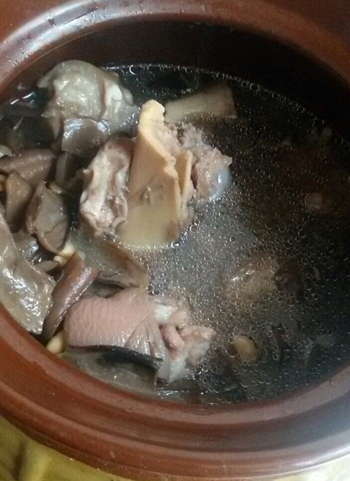 知道狗仔豆是好东东,所以我就用它来煲猪脚黄豆汤了。虽然我是第一次做狗仔豆黄豆猪脚汤,但我们都很喜欢喝,而且煲过的狗仔豆也蛮好吃的,清甜爽口。(煲之前要提前浸泡半小时以上) 看,这就是我煲的狗仔豆黄豆猪脚汤了,香味浓郁,口感极佳,且温肾补肾。其实我已经煲了一大锅的汤的,但由于宝爸和小不点提前把汤喝了,所以现在锅里也没剩多少汤了,剩下的基本上都是汤料了。