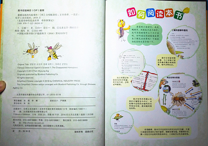 在这套丛书中,所有的昆虫都是有喜怒哀乐,有自己的梦想的,他们不再是让孩子们害怕的虫子,而更像是我们的邻居。读了这样的故事,孩子们会学会尊重生命,爱护自然,保护环境。在《蜜蜂家族的失踪事件》中,串串侦探就把人类列入了蜜蜂的天敌,我们的杀虫剂、电磁波也会影响蜜蜂的生活。