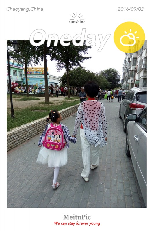 我想让她美美的去上学,希望在她的童年记忆里,留下幼儿园里的美好时光。无论将来的小学、中学、大学……甚至更高的学府,都记得,那年,北京,凉爽而美丽的秋天,她梳着两条羊角辫,扎着我买给她的漂亮头花,雀跃的、一蹦一跳的,牵着姥姥的手,去上学的情景。