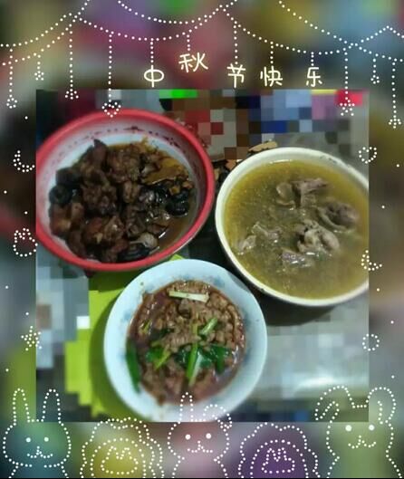 全是肉菜呀!我家是吃不了的,顶多一道排骨就行了 |