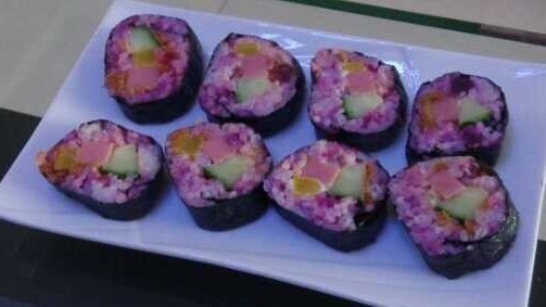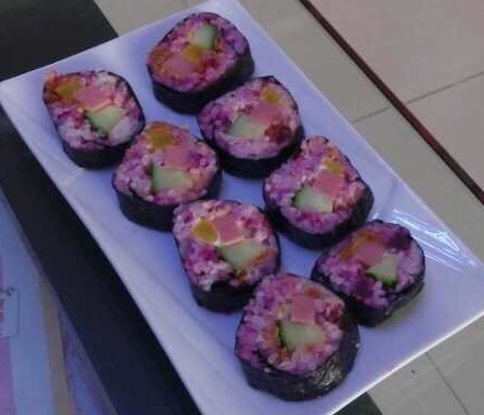 紫米寿司的颜色就是漂亮 啊