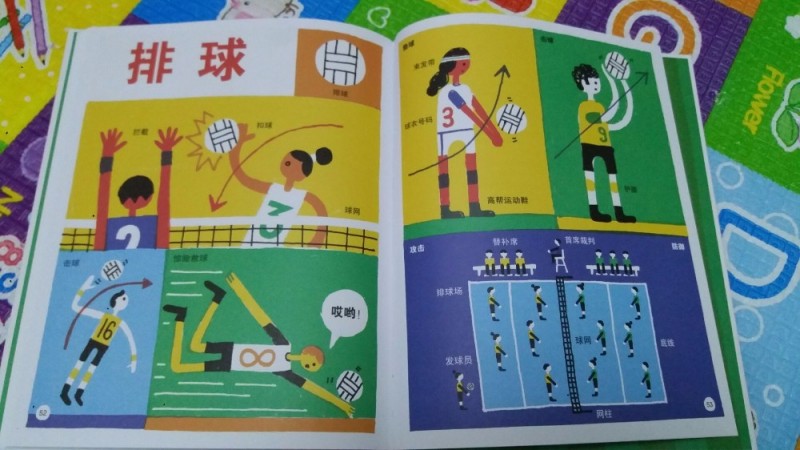 里面内容的运动介绍分别有:羽毛球、篮球、足球、排球和棒球等等,而羽毛球和排球都是我个人的最爱,自从看了08年奥运健将林丹的比赛,更爱上这项运动,觉得特别神奇,什么球都能接到,也觉得很不可思忆,不枉“超人丹”称号。另外特别想说排球今年中国队很棒, 能再次达到奥运顶峰,实属不易,默默为他们加油。