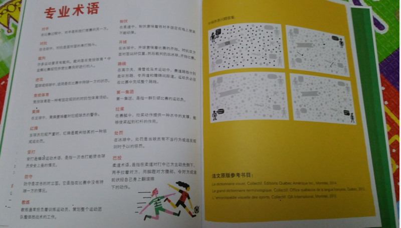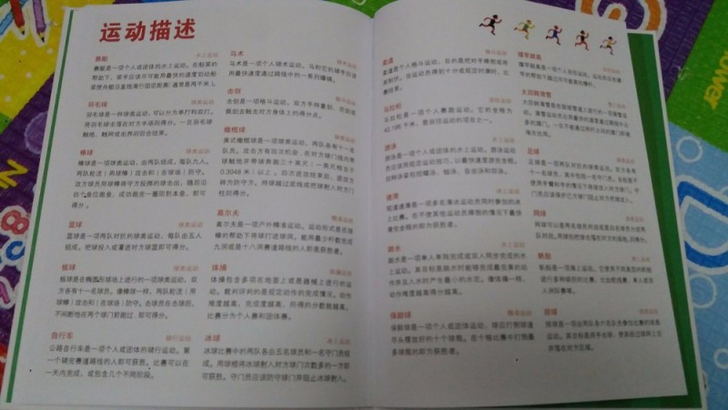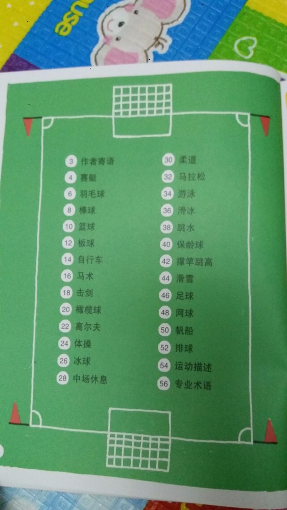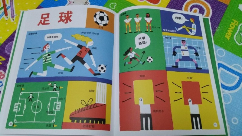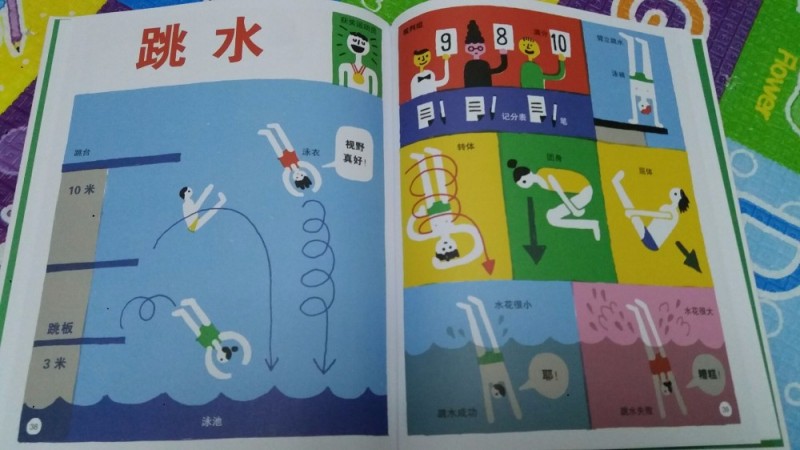只要是奥运年,大家的话题、关注都会在运动方面,当然奥运赛式也不会错过,特别是中国的强项,我也是挑我最喜欢的比赛,因为带娃真心没时间只能有选择性的看比赛,也不容错过的比赛。 更幸运的是能在奥运年收到《体育全知道》,特别应景的到来,也是看了奥运后希望自家孩子长大也能有自己喜欢的运动爱好,想想特别好的一本丛书,让宝宝全面了解各项动的比赛规则,学习体育知识。 这本书的书皮用硬纸版制成,宝宝抓着也不怕抓破,图面设计颜色特别的鲜艳,让孩子看了又想看,抓住孩子对色彩捕捉的喜爱,让孩子爱不释手。这本书共有25项运动介绍,人物鲜活,把细节刻画得很容易让人记住,用比较形象的卡通方式体现,书中内容都是最常接触的运动,能更易让孩子结合生活慢慢熟悉并爱上它。