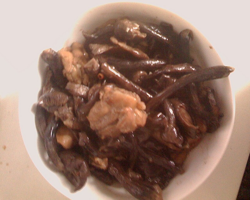主料:鸡肉我用的是鸡大腿肉,(一个整鸡最好,可是我家人少,鸡杂也不爱吃。)蘑菇适量, 调料:葱、姜、干红辣椒、大料、花椒、酱油、料酒、盐、糖、食用油、香叶。 做法: 1.将鸡腿洗净,剁成小块; 2.将蘑菇用温水泡30分钟,洗净待用; 3.坐锅烧热,放入少量油,放入白糖,(白糖提肉色,等糖微微变色就放作料和肉)待油热后放入鸡块翻炒,至鸡肉变色放入葱、姜、大料、干红辣椒、盐、酱油、料酒,将颜色炒匀,加入适量水炖十分钟左右后倒入蘑菇,中火炖三四十分钟即成。 经过慢火炖制的鸡肉,更容易消化,汤的味道格外鲜美,水解产物极易被肠道吸收。冷天喝鸡汤有助于保持呼吸道通畅和预防呼吸系统感染。 蘑菇号称植物肉,有益胃肠,化痰、理气的作用;蘑菇还能抗癌和防癌作用呢,蘑菇中有含有干扰素的诱导剂,它能提高人体内干扰素的水平,而干扰素则能干扰病毒蛋白质合成,从而抑制病原微生物的生长繁殖。此外,蘑菇还含有一种属于多糖的活性物质,这种多糖有提高人体免疫力的作用。 冬天,是呼吸道感染性疾病的多发季节。冬天吃小鸡炖蘑菇,特别有益,不只让人享受了美味,还能暖身温中、增强免疫力。吃鸡肉、吃蘑菇、喝鸡汤,能防控感冒。它还是东北民间流行的滋补良方,凡体质虚弱和久病卧床的人、老人、产后哺乳的妇女,都宜常吃。所以吃就吃对的,不吃贵的! ![]()