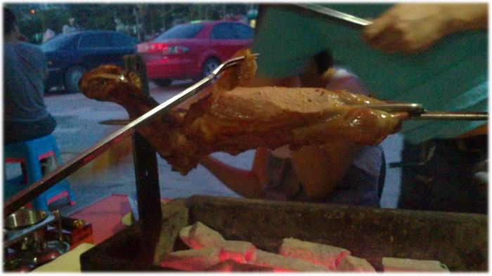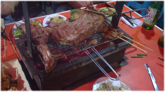 单单羊腿没吃过,我们这里吃的都是烤全羊。