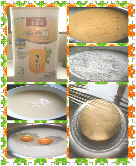 馒头其实都会做了,只是材料不同而已,我用发酵粉用温水破开后,突然想到宝贝前段日子断奶失败后剩下的奶粉,都好久了,肯定不能喝了,就像不妨放进去蒸馒头试试,就拿过来放了一些进去,又打了两个鸡蛋,这可是我妈妈特意给宝贝赞的呢,是自己家养的母鸡下的,天然的绿色食品哦,蛋黄黄黄的,然后又放进面粉合成面团,放在容器里,最后用保鲜膜包住发酵,保鲜膜可以使发酵时间变短,而且我用的也是温水,一般两三个小时就可以了,等面团发酵到比原来的一倍大就可以,最后做成小馒头,可以做成任何形状的哦,放在蒸锅里再发酵十来分钟就可以大火蒸啦,一般需要十五到二十分钟吧,就可以蒸熟的,是不是很简单哦。 我做的是石榴,不怎么好看哦,这也是在老家的时候,看妈妈做,我也是第一次尝试哦。 宝贝馋的拿了一整个往嘴里放,小心烫哦 本作品未经作者许可不得转载,转载请征求作者意见。擅自转载使用,将保留追究其法律责任的权利! 评分记录