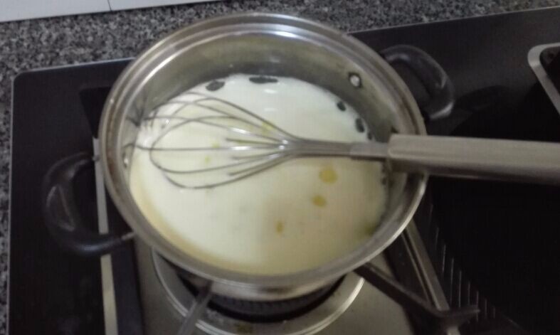 ![]() 这次做冰淇淋,也是家里开封的奶油要尽快用完,刚好天气还很热,吃点冰淇淋还是可以的。本来想再按去年的方子来做的,后来无意中看到了这款懒人版不要搅拌的冰淇淋,就想换着试试,毕竟反复搅拌还是挺费事的,既然有更省心的方子那肯定要尝试一下了。 ![]() 首先准备材料: 淡奶油:200g 纯牛奶:50g 鸡蛋:2个(只要蛋黄) 白糖:50g 柠檬汁/白醋:少许几滴(去鸡蛋的腥味) 盐:少许 ![]() 把鸡蛋的蛋黄和蛋白分离,只要蛋黄部份,放入白糖,加入几滴柠檬汗或白醋,用打蛋器搅拌均匀,直到蛋黄液颜色变浅黄色即可。 ![]() ![]() 把50g纯牛奶倒入小奶锅加热,小火微微加热,直到牛奶表面冒泡泡即可关火,趁热把热牛奶慢慢倒入打好的蛋黄液,一边倒一边快速搅拌,不能让蛋黄结块。 ![]() 再把蛋奶液倒回小奶锅,加入一点点盐,小火微微加热,一边加热一边用筷子快速搅拌,为避免糊锅,火越小越好,直到液体煮开再关火,放置待凉。 ![]() ![]() 打发淡奶油,打到9分发即可,就是提起打蛋器能出现垂直的尖尖角就可以了。 ![]() 把打发好的淡奶油倒入放凉的蛋奶液,搅拌均匀,就成冰淇淋啦!还可以根据自己的口味放入不同的东西,比如:巧克力味、蔓越梅味等等。刚好家里还有一包蔓越梅,所以就做了原味的和蔓越梅味的。盖上盖子放入冰箱冰冻3个小时以上,就可以开吃了。这次因为剩下的奶油不多,所以做的份量不多,很快就被小朋友们解决了。 ![]() 这是冻了一晚上第二天拿出来吃的蔓越梅冰淇淋,味道棒棒哒。 自制无添加的冰凉爽口美味的冰淇淋,想吃的朋友们可以试着自己动手哦!