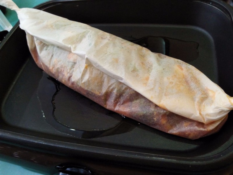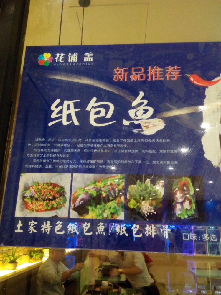 很快烤鱼上来了,鱼就包在那个白色的纸里面,等着电磁炉烤熟,烤熟以后店主就来把这个纸拿走,就可以让我们开始吃了,烤鱼的肉还是很嫩的,我们点的蒜香味,里面都是一些大蒜碎末,吃得不是很习惯呢。吃完烤鱼,我们还加了金针菇,娃娃菜,年糕,生菜等一些蔬菜,吃完已经很饱了。点点吃完就在店里转了一圈,也没有什么好玩的,吃完以后我们还去附近的超市逛了一下才回家的。