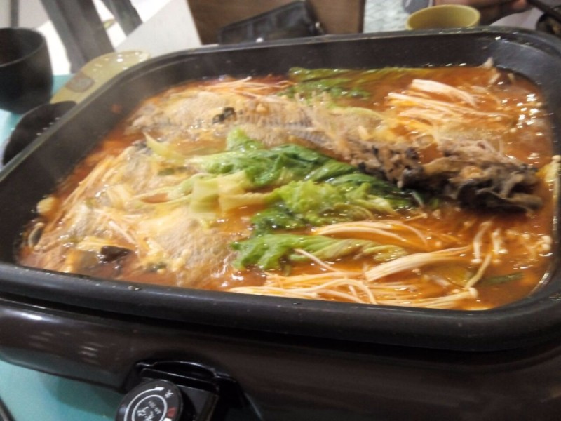 烤鱼和我们之前吃的也是差不多的,就是纸上烤鱼觉得有些新鲜,我看了一下这个纸上烤鱼的介绍,就是纸包鱼,就是根据纸上烤肉和烤鱼而来的,据说还是土家特色,因为这个烤鱼之后吃火锅会有一些土家的特色的米粉赠送,我不怎么喜欢吃米粉,觉得没有面条有嚼劲。