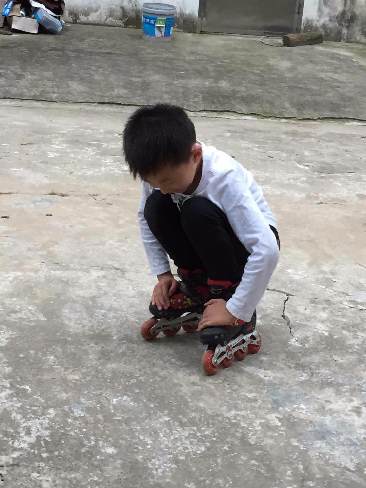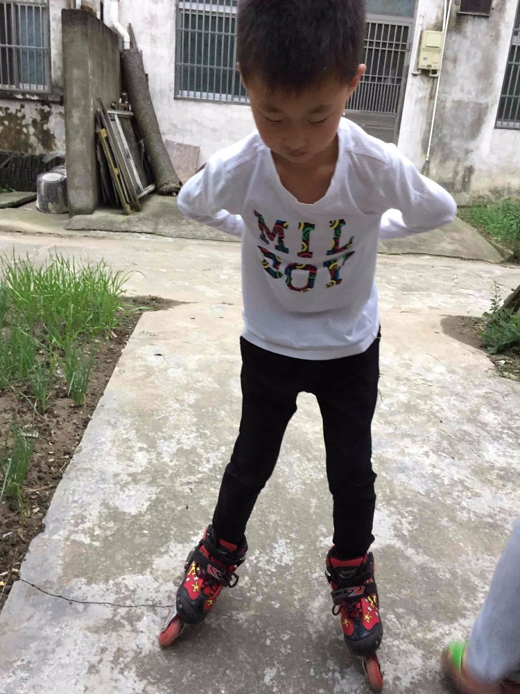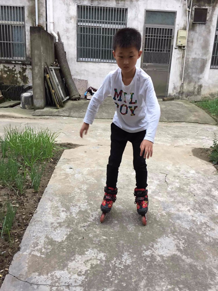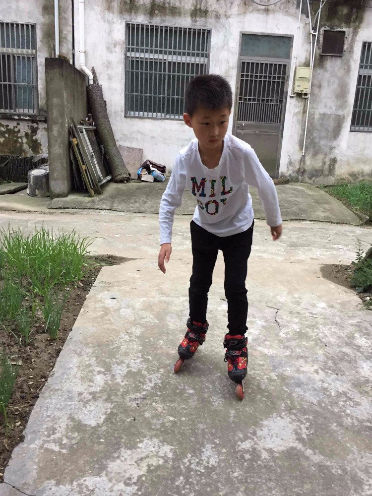 感觉假期就是很快的,转眼已经是第六天了,这几天天气还不错的,我们几乎每天都会到外面去玩一会儿,户外活动也是很重要的,白天点点在家做作业看书,到了傍晚的时候我和点点就提议到外面去溜冰了,门口的场地不是很大,穿上溜冰鞋,以为这个溜冰鞋穿不下了,拉到最大的地方,还是可以穿的,穿好溜冰鞋以后,点点就说不知道怎么溜冰了,点点还是在幼儿园学习的溜冰,那时候学溜冰学得也挺快的,后来上了一年级就没有溜过,估计已经忘记了。