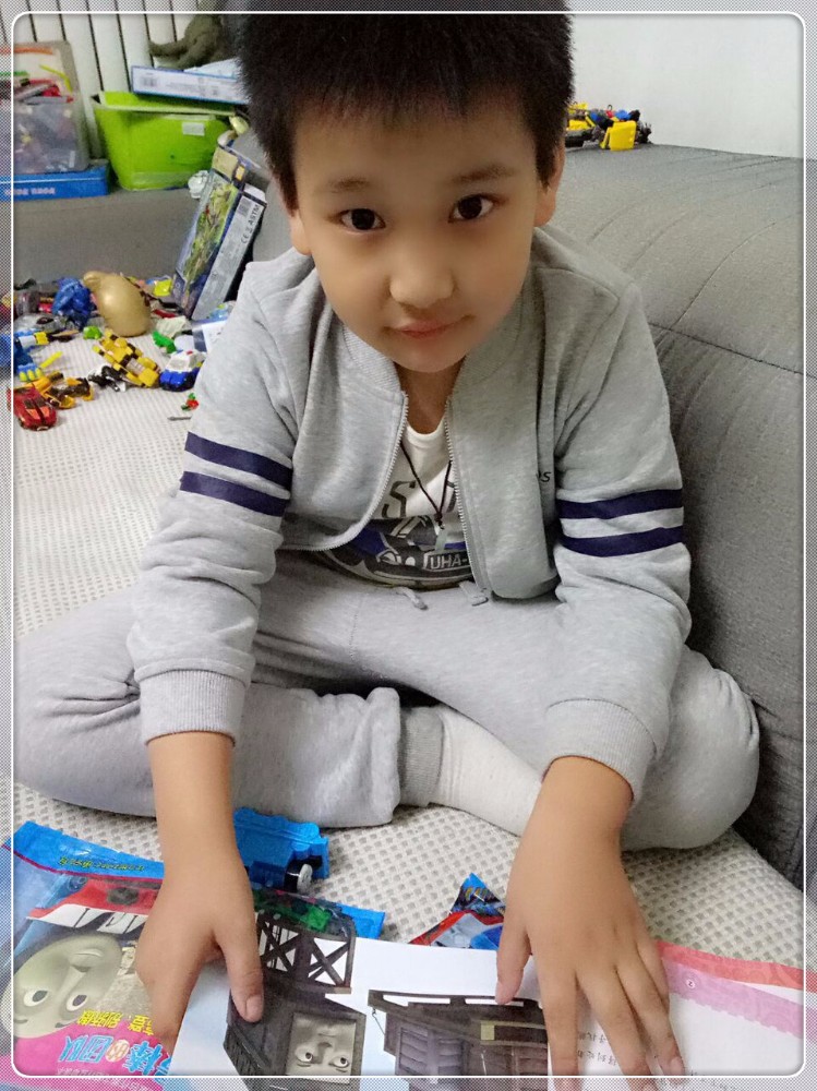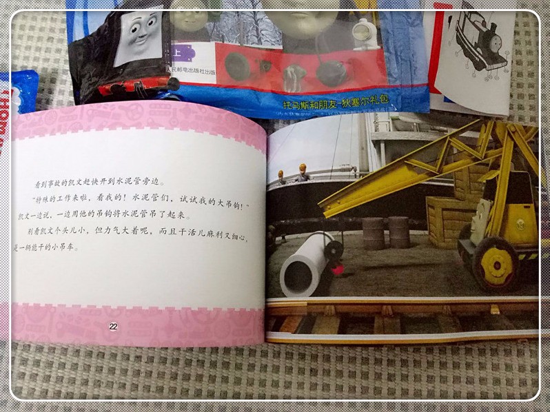 一周前,因为Aric上学,凯爸工作,我就和老爸老妈去看妹妹去了。等放学时间到了接了Aric后我们一起回到家,竟然发现沙发上有礼物。Aric一眼就看到了托马斯,很惊喜的问是谁的?我也迷糊,不知道啊。我们给凯爸打电话,他说下午回家拿配件了,所以就把肯德基正在搞活动的托马斯绘本和玩具带了回来,然后放到了沙发上,就等着Aric放学回家后的惊喜,不过因为还有工作凯爸就离开了。果然Aric喜欢极了,还说这是肯德基的呢,然后迫不及待的打开,拆开这几份爸爸带回来的惊喜。