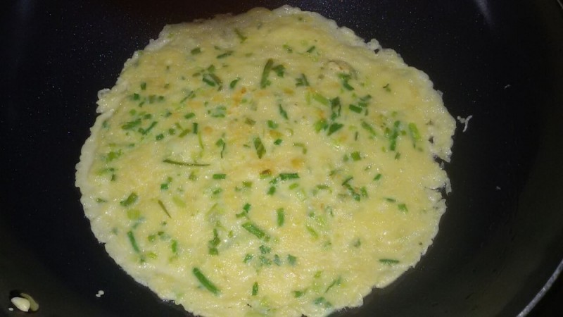 知道父子俩特别喜欢吃葱油饼,所以我就打算做葱油饼,想尽量做几个完整的葱油饼,然后取一个来代替生日蛋糕。下面给大家简单说一下葱油饼的做法。 材料准备: 小鲜葱几根、鸡蛋4只、面粉、食盐、花生油和水适量 步骤: 1、 鲜葱去葱须,切成葱末,备用; 2、 鸡蛋去壳,鸡蛋液放碗中,搅匀,然后加入面粉、葱末、食盐和水搅拌,备用; 3、 不粘锅洗净,烧热,加入适量的花生油,尽量让油沾满整个锅底,然后倒入适量的煎饼液慢火煎,煎至一面成型后再翻到另一面煎,饼熟出锅。