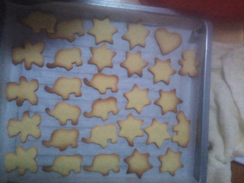 烤箱买回来很久了,就考过蛋挞,而且是买的蛋挞套餐做给孩子吃的,最近经常自己做手擀面给孩子吃,就想着把烤箱也利用起来,上网买了三百多的东西,有材料,有工具,前两天就收到了,刚好遇上熊孩子放假,也没有做,今天儿子去上学了,中午的时候我翻开之前下载的APP,开始找方子,本来是想先做蛋糕的,又觉得比较麻烦,打算先做个比较简单的,毕竟什么都没有做过,就打算做饼干给孩子吃。