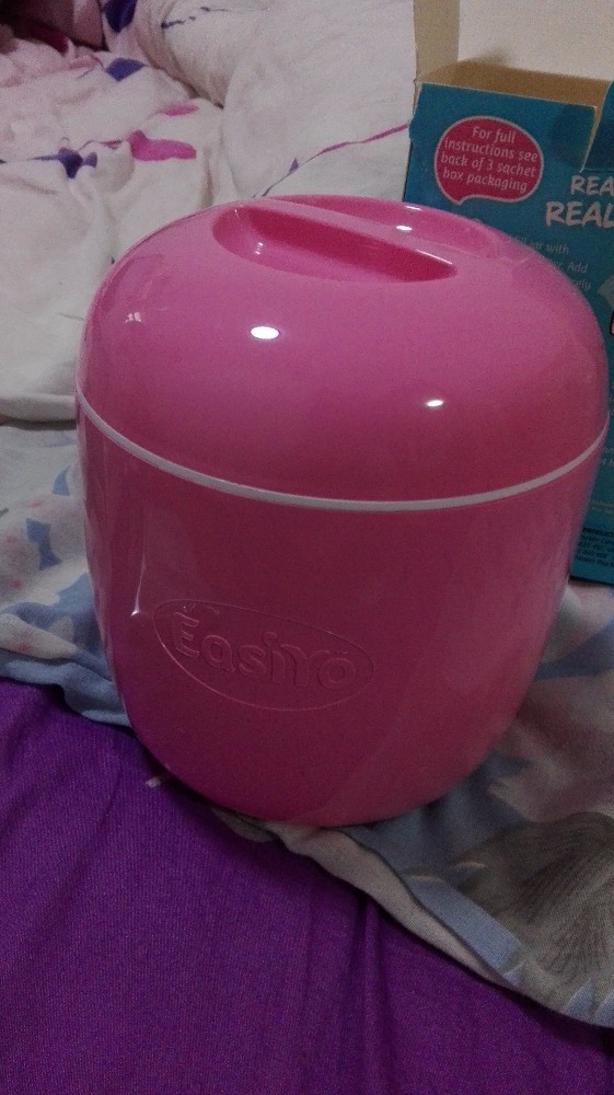 和老公回到小区走门卫处看到我的名字,老大爷也不在,我想着反正是我的快递我就拿了吧。。。。正好我爸从淮安回来他看我抱着快递箱子以为很沉连忙接过来,老公手里提着行李包没法帮我拿了。 到了家就迫不及待打开看了下,可能我一开始报名的时候没注意,我以为酸奶机嘛,应该是机器插电的吧?!然后打开箱子发现没有线子,看了说明书才发现是不需要插电的。不插电的机器可是很方便又好用的~ ![]() 我中的是迷你的,我看到地带有些宝妈中的比我的大。 东西的外包装就是这个样子,看起来特别高大上吧?!我跟朋友炫耀的时候还没打开包装,她就说以后她的酸奶就是我负责了。哈哈~ ![]() 这个是酸奶罐,我的是红粉色的,其实我本人喜欢冷色系。做酸奶主要就是靠它啦~ ![]() 这个是它的内脏构造,还有一个小酸奶罐。 ![]() 这个是酸奶粉,一共三袋。打开来闻起来酸酸的香香的,是浅黄色,里面还有椰蓉。 说明书上介绍的还算仔细,不过可能我傻,真心的还是没看懂,到地带借鉴了一下其他宝妈怎么做的。看到其他宝妈都做得棒棒的,过程也写得很仔细,所以我这个呆瓜也会了。 第一次做我并没有把一袋全倒进去,倒了四分之三吧,兴许是我倒得少了,十几个小时过去打开小酸奶罐里面还是有点稀。但是毕竟是自己做的,自己还是吃完了,酸酸的。我就喜欢吃算的,然后忘记拍照留念了。到了下一次做的时候我就把酸奶粉全倒进去了,终于是成固体状了,像是老酸奶。味道还是那么酸~我喜欢~ 不过我没吃完盖子没有盖就放冰箱里了,隔了一夜拿出来酸奶水也出来了。 ![]() 这次能中到酸奶机是我的又一次幸运,当然也要感谢地带的活动啦~这样简易的酸奶有孩子的可以很方便的做给宝宝吃的,我的只能先提前帮我的孩子试吃了~~~ 本作品未经作者许可不得转载,转载请征求作者意见。擅自转载使用,将保留追究其法律责任的权利! 个性签名