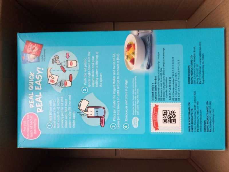 ![]() 包装很是严实,好大一箱子。都用泡沫塑料纸保护着。 ![]() 盒子图案漂亮,颜色清新,一看就很舒心。 ![]() 盒子上介绍很详细,图示清楚。 ![]() 步骤说明非常细致,就是不是中文哦。不过看图完全能够看得懂。 ![]() 其实盒子里面还是有说明书的,说明书就有中文版本了。而且实在是操作简单,真的不用担心看不明白。 ![]() 套装是一套酸奶器,加上两包酸奶粉,每包正好做一次的。 准备做酸奶了 这次收到的酸奶粉是香蕉和椰子两种。其实粉袋上也有制作方法的,而且这个可是中文的,一看就明白了。![]() 一包正好是一次的量,能做1000毫升的酸奶,喝两天差不多呢。 ![]() 大家都会这么觉得,自己亲手做出的东西会更安全,味道也能更符合心意。家有小宝宝,干净安全无添加就尤为重要呢。
