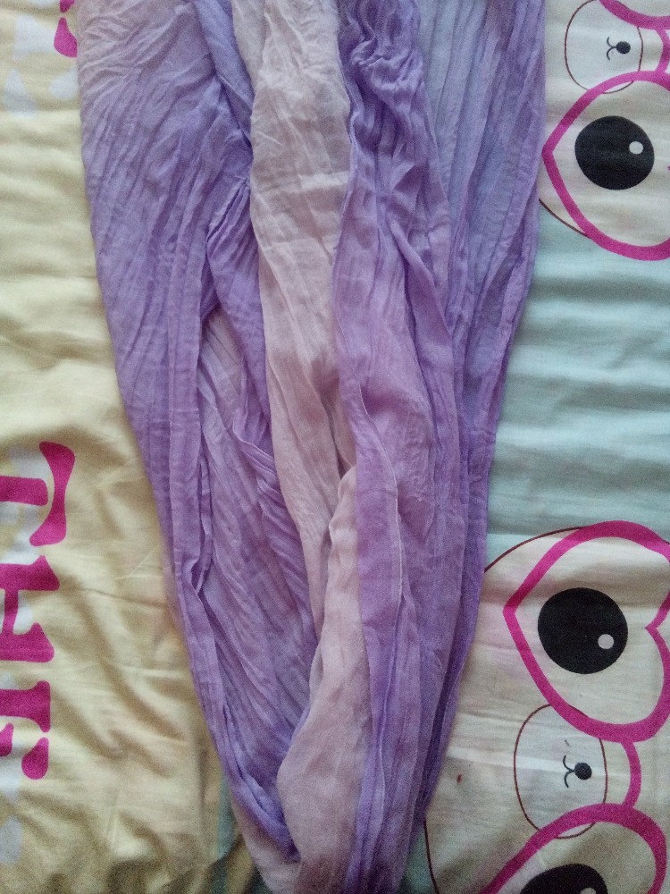 天气冷的时候,穿得厚会暖和,如果你再围上一条围巾,就会更加暖和,尤其是现在的季节,还没有进入冬天,天气变得很冷了,秋风一直吹着,从脖子里进风就觉得非常冷,如果穿的不是特别多,加一个围巾就非常暖和的。 每个姐妹都有很多条围巾,围巾的样式和款式也是非常多变的,不过这几年来,我观察发现,围巾的材料还是哪几种,颜色也是越来越多的,围巾也是一种配饰,丰富我们的生活。 我最近经常带着一个紫色的围巾出门,因为这种线的围巾不会像毛线的显得那么热,要不然大家都会觉得你进入冬天有点太早了呢。这个围巾还是多年前和同学一起在路边买的呢,当时觉得特别漂亮,是白色和浅紫色的渐变色,颜色素雅,围巾的长度刚好是围着两圈,多出来的可以打个结,非常合适,围巾挺宽的,我打开围巾可以当一个床单用呢,是那种单人床的床单大小。 前几天和老公一起去看病,医生给开了很多药,用医院的大塑料袋子装着,我们一路都在急忙赶路,走到火车站买票的时候,塑料袋突然烂了,医院的塑料袋质量很差,我赶紧把围巾取下来,铺在地面上,然后老公把药都放到围巾里,四个角对着打结,然后挎在胳膊上接着赶路。这个围巾在特殊时刻显出自己的用处了,真是非常喜欢的围巾。 这种线的围巾,不会特别热,适合春天和秋天用,保暖一点,遇见特殊情况还可以用来当其他的东西使用,现在还没有尝试把它当床单铺呢,我觉得这个围巾被弄的这么多褶皱,估计铺在床上不会很平整,还是不要尝试了,家里的床都是大床,这种合适的小床都很少见了,除非是自己租房子会有这种尺寸的。