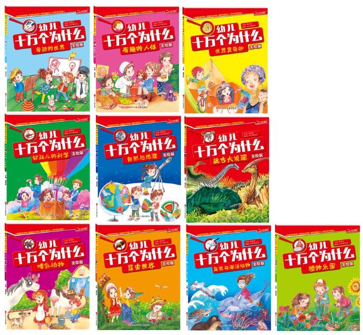 ps.《幼儿十万个为什么》(美绘版)全套共分十册:《自然与地理》《昆虫世界》《鸟类与海洋动物》《好玩儿的科学》《世界真奇妙》《植物乐园》《有趣的人体》《身边的世界》《哺乳动物》《远古大发现》。