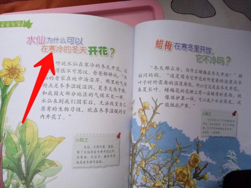 读了几篇,我们回到目录,换了一种方式 我来提问,她来回答 我问1.池塘里有哪些植物? 2花为什么是香的? 3草莓上黑色的小点点是什么? (如果这些问题没有单独被罗列出来,大人可能觉得这些都很平常的现象,这就是大人不如孩子的地方。孩子的好奇心,观察力都比大人要强,他们总是在问”为什么“) 后来我们又看了很多,大致翻翻,我觉得自己有很多不足,没有经常带孩子去接触大自然,我们小时候,还知道牵牛花,可是我女儿没见过。看到千岁兰,我自己也涨姿势,我说有活了两千年的花,女儿说,一千年,两千年,三千年,好厉害的花呀!