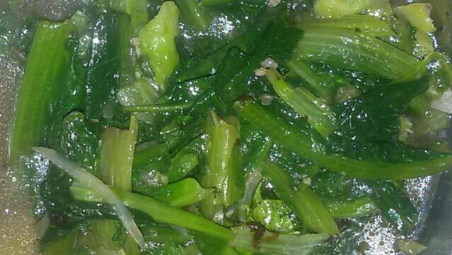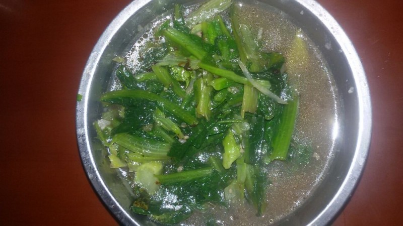 这是油麦菜,平时吃的时候是很好吃的,有股油菜特有的清甜,哪想到这蔬菜宝爸也是多放了盐,所以菜也是很咸的了。后来我把菜里的菜汁全都倒掉,然后加入一些温开水洗一遍,蔬菜才可以入口。 我知道那是昨天晚上宝爸实在是太累了才这样的,否则他煮菜是极少失手的。看来我以后不能偷懒了,不能让本来就很累了的宝爸一回来就煮菜了。