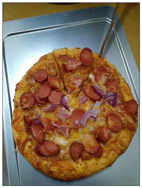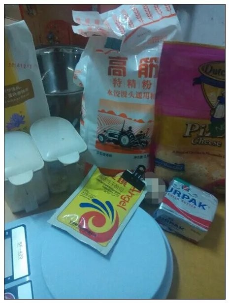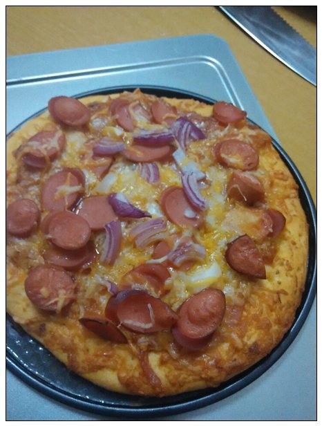 很喜欢有一空就玩烘焙,简简单单,有着自己动手丰衣足食的感觉,另一个就是吃着放心,还可以随意变着花式,喜欢什么口味就放什么材料。看着成品,确实有不少的成功感存在。还有就是家人都很喜欢自己整的烘焙成果,无论第N次的成品,都会在半天时间就把它们消灭掉了,确实在很大程度上给予了我无限的动力,继续弄好吃去。这次烘焙的主角是平时在外很喜欢点上的彼萨,自制彼萨,简单又美味。 先看成品图,这是最近整的,在家也自制了好多次彼萨了,每次都做得不错,现在介绍的是第一次整的,也相当成功。 有些朋友是在店里买了彼萨皮,然后放陷料,酱料的,不过我喜欢全部自己来弄。其实做个面饼皮很简单。看我的原料及步骤吧。 先做彼萨皮,即是面饼皮,在等待发酵时间就做陷料和酱汁。 彼萨皮的原料:高筋面粉150G,低筋面粉60G,温水100ML,植物油小量,糖适量,盐小许,干酵母3G。