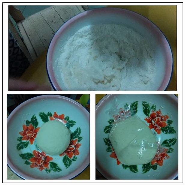 制作步骤: 1. 先发酵彼萨皮。把所有原料高筋面粉、糖、干酵母、盐加入温水揉搓面粉,弄成光滑的面团,盖上保鲜膜,让其发酵一个小时左右,使面团变大2倍。