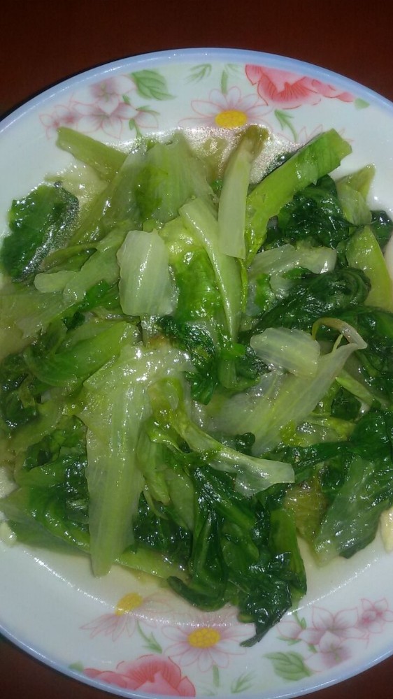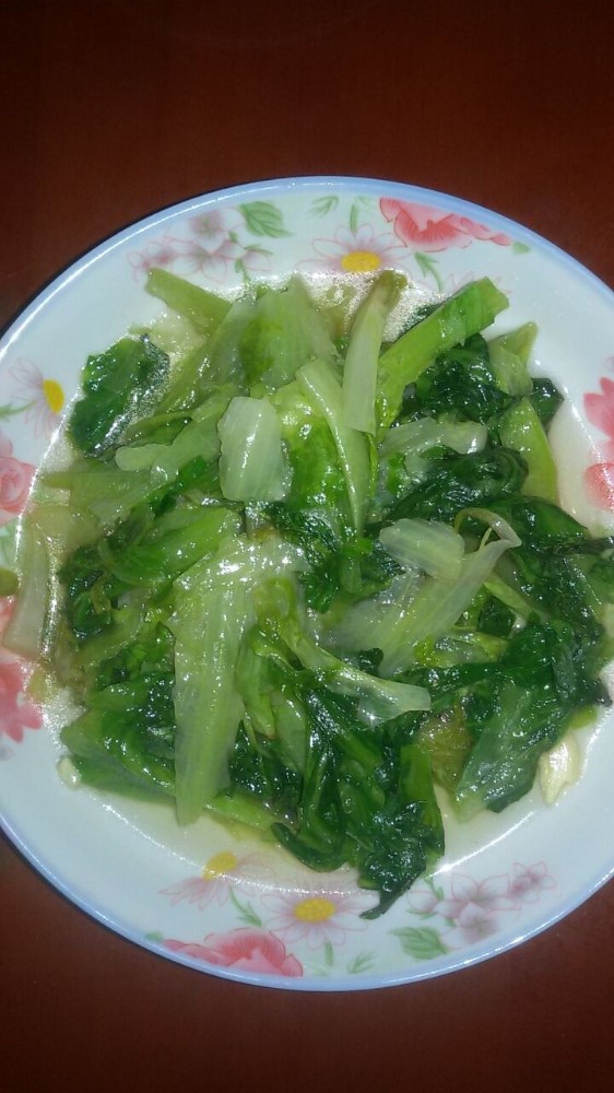 虽然我最不擅长炒的就是生菜了,可由于宝爸不在家,小不点又太小不会炒菜,所以只能俺亲自掌厨了。想起宝爸平时教我的炒菜方法,下锅前让锅烧热,然后加入一些清水大火煮,然后多放一点花生油,再加一些食盐进去,水煮开后再把生菜放到锅里,不用盖锅盖,就大火这样煮,稍为翻动一下,菜差不多熟时再加入一些包尾油(花生油)和一点食盐,然后即可关火出锅。 虽然宝爸没在旁边指导我,但我凭着他平时所说的去做这生菜,果然,这菜的颜色确实比我平时煮的菜的颜色要绿一些,当然味道也是更好一些的了,小不点竟然与俺抢着吃呢。