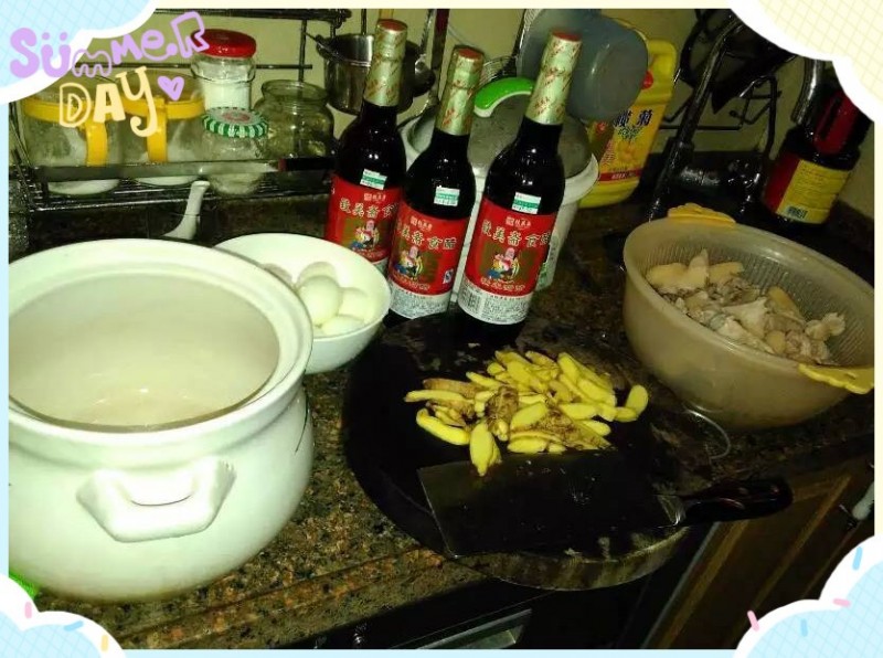第二,把焯过水的猪脚再用冷水冲洗干净备用。 第三,姜去皮洗干净,这个是花时间的活儿,然后切片。我们平时吃的不是切片的,现在只是为了可以快点吃了,也容易熟。 第四,把鸡蛋煮熟然后剥皮备用。 第五,在热锅里下油翻炒一下猪脚和姜。 第六,把所有材料都放在沙锅里,猪脚,姜,鸡蛋,还有900克的甜醋,记得是甜醋,再放100冰片糖,要记得甜醋要全部浸没其他材料。开始焖加入大火烧开后,再转 等啊等啊,终于完成!看,这颜色是多么的诱人,香气直扑入鼻!我不客气了! 注意:如果不够甜可以再加糖,时间越泡得久,姜就越入味,真的要流口水了为小火焖半小时左右。 本作品未经作者许可不得转载,转载请征求作者意见。擅自转载使用,将保留追究其法律责任的权利! |