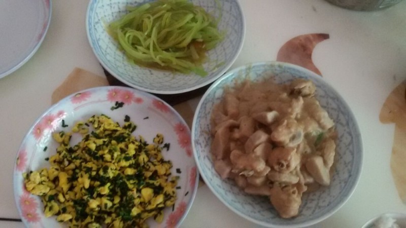 这是韭菜炒土鸡蛋,土鸡蛋和韭菜都是我们从乡下拿回来的,加上朋友很会做这菜,所以深受孩子们的喜欢,也成了孩子们的主菜了。话说我平时也会做韭菜炒鸡蛋这菜,但我做的没朋友做的那么好看和好吃,小不点并没有抢着吃。可朋友做的,小不点却与珊珊妹妹一起抢着吃,可见朋友做的韭菜炒土鸡蛋确实很好吃了。