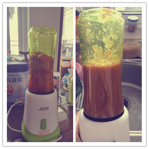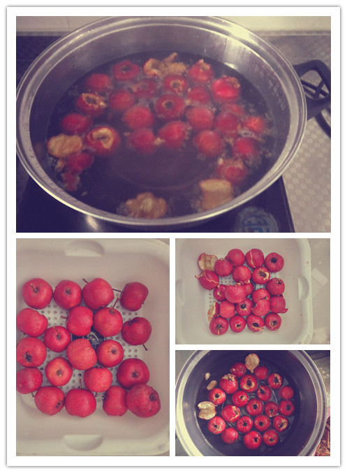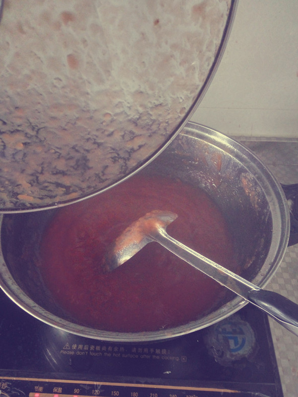 ![]() 小小皮球不喜欢吃水果,本来我是没想做山楂酱的,自己动手能力本来就不行,要是做了以后小小皮球不吃,岂不是白费我一番心血?可是婆婆跟我说山楂吃了好,开胃呀、促消化呀,小小皮球这段时间总是说肚子不舒服,我想着要不然就试试这个山楂,做不成酱的话,果丹皮也不错呀。我小时候可是最喜欢吃果丹皮的了,小小皮球跟我一起的时候也吃的很开心。 虽然地带里也有很多做山楂酱的教程,但是毕竟从没做过,怕失败啊,就想着说先做一点试试。要是成功了小小皮球又爱吃的话下回再多做点。于是就派老公和小小皮球去买山楂,我在家准备。不知道是不是山楂的季节过了,我们这里的山楂挺少的,老公买回来的看起来也不是很新鲜的样子。因为头天晚上我问过可欣妈,她教我山楂要挑亮的,圆的,新鲜的山楂指甲一碰肉就刮伤了,那样做出来的成品才好吃。行吧,那就先拿这点练练手。 ![]() 山楂洗干净沥着水,然后我就到处找可以去核的工具。听说要尽量不让山楂肉在空气里待长时间,这样才能保持山楂的口感,要不是这个原因我就直接掰开把核给扣出来了。找了半天也没找着合适的工具,去核必须要空心的东西才行啊,最后我用的笔帽、笔管还有筷子。用笔帽或笔管从山楂的一头戳进去,核不就从另一头出来了吗?然后用筷子把没有剃除干净的核给弄掉。就这么将就着也弄好了。 接下来就应该上锅煮了。一开始我就放了一点儿水,山渣都没泡上。赶紧打开地带的帖子看看又加到半锅,想想还是不放心,就拍了个照片发给可欣妈看,问她水少不少?她告诉我多了,都可以喝山楂水了 然后我赶紧又给舀出来一大碗。本来我看的帖子是说煮三十到四十分钟,可欣妈说先煮个二十分钟看看,如果家里有榨汁机的话还可以节省很多时间。![]() 这就是煮了二十分钟之后的山楂了,期间我还用汤勺按过,可以看出来不是很烂,不过可欣妈说可以了。 ![]() 我就把基本煮烂的山楂捞出来,放进榨汁机里一榨,果肉马上变成糊了,然后又倒回锅里继续煮。本来是很简单的,加了冰糖再把糊煮开就可以了。可是我觉得这才是最考验人的一环,因为我用的电磁炉,火力掌握不好,打完糊之后的山楂加了冰糖再放进锅里煮,它就开始往外咕嘟咕嘟吐泡泡了,开始我是盖子盖起来的,可欣妈说不要盖,可是我把盖子打开之后那个糊糊溅的到处都是。 ![]() 呐,就像这样的。我手忙脚乱的都不知道该怎么办了,婆婆又出门了,我不知道怎么让那个火小下来,可欣妈还拍照截图画圈圈告诉我,怎么才能让火小又继续煮。整个制作过程都是在可欣妈的远程下完成的,从开始上锅煮到最后成品完成,我问了无数的问题,可欣妈一点儿都没有不耐烦,很认真很耐心的告诉我怎么做,最后做好了还叮嘱我拍张好看的照片。 ![]() 现在我知道了,原来只要把山楂煮个二十分钟,用榨汁机打过,放了冰糖稍微煮开就好了。所以同志们切记,一定要尽量放小块的冰糖,比较容易溶化。看,做成之后的山楂酱是不是很漂亮呢?装在冰棍模具里,放冰箱里一冻就变成山楂冰棍了。开胃又解暑呀,不过只限夏天哦。