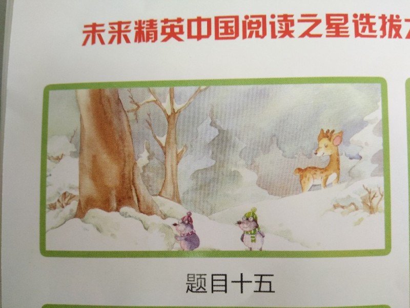 女儿参加了“未来精英”中国阅读之星活动,当时报名的时候就是想让孩子去见见世面,因为孩子一次活动也没有参加过。没想到还进入了复赛。复赛是在三月初开始。给了十九个题目。有的图我也不知道是什么意思。所以想请地带的妈妈们帮帮忙,帮我们集思广益提供一些思路。多谢大家啦!