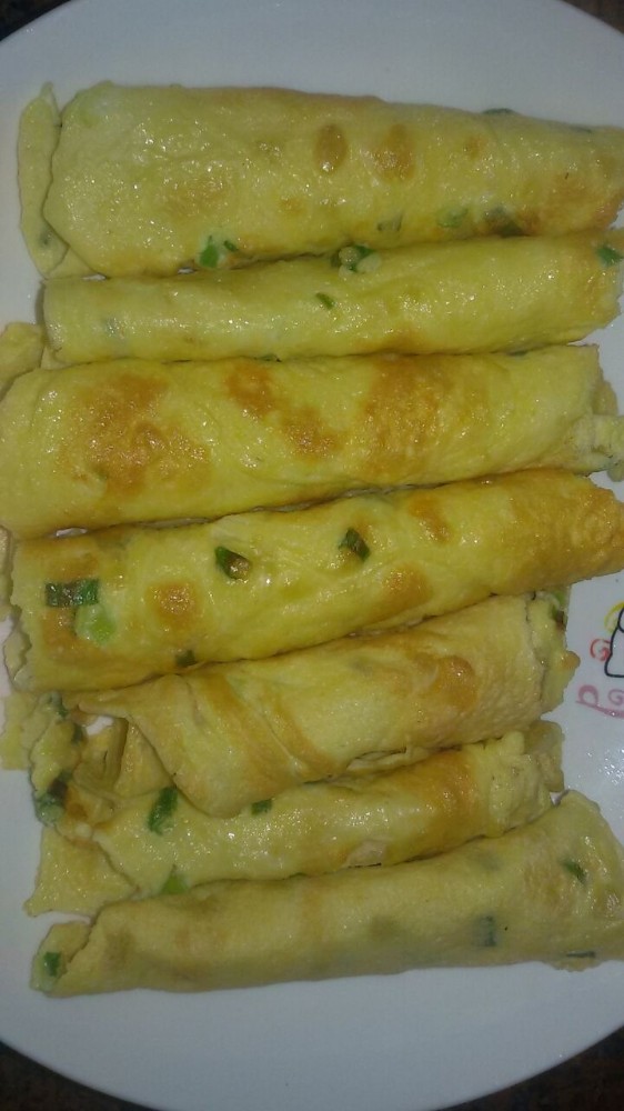 考虑到我们很久没吃香葱饼了,所以我将昨天就专门买来了面粉和鸡蛋,然后琢磨着第二天早上起来做。因为做煎饼是比较简单的,只要小不点不吵着我,我会很快就会做好的。幸运的是,我起床的时候小不点还没有醒,然后我才有心思更好地做煎饼了。或许是因为有经验了,或许是因为小不点没有在旁边吵闹或者捣乱,这次的煎饼俺觉得做得蛮不错的,做得都很完整,几锅都是完整的一张饼出锅的,比我以往任何一次都要做得好。