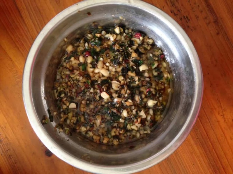 大家猜猜下面这盘子里装的是什么?对,是用来搭配鸭肉的蘸料,里面有炒过的花生、葱末这些,配着鸭肉吃特别的香,特别的开胃,我最喜欢这样的蘸料了。