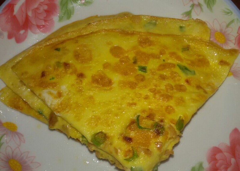 话说长这么大,我还是头一次吃萝卜干煎饼,虽然这样的搭配很另类,但煎饼的味道确实很不错。
