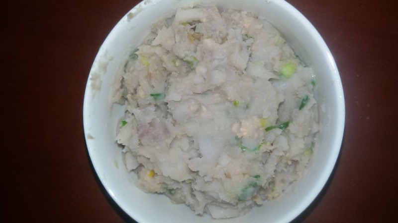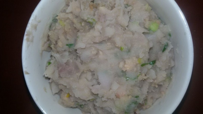 本来我是打算今天早上煮芋头西米糖水做为我们母子俩的早餐的,后来因为起得有点晚了,来不及煮糖水,所以我就突然改变主意,把芋头糖水改为直接清煮芋头了。考虑冰箱里还有少部分的瘦肉末,加上早餐最好吃点肉肉,然后我就打算放到芋头里面煮。不过,瘦肉末是比较容易熟的,而芋头是比较难熟的,所以不能把它们同时下锅煮,得把芋头煮软了才能下瘦肉末,否则瘦肉末煮久了就不好吃了,不但如此,瘦肉的营养也容易流失。 ![]() 因为小不点早上起床时有点小鼻塞,所以我就决定往芋头瘦肉末里面多放一些葱花,一来可以提味;二来也可以驱驱寒通通鼻子。 看,这就是我煮的芋头泥瘦肉末了,看着还可以吧。其实,里面的芋头有些不是我故意弄烂的,而是芋头实在太粉了,所以一煮软了它就自己成芋头泥了。虽然卖相是差了些,但我觉得这样更合小孩子吃,而且小不点也是比较喜欢吃的,不会像平常吃早餐那样经常把食物含在嘴里了,所以今天早上他吃早餐的速度比平时快一些了。