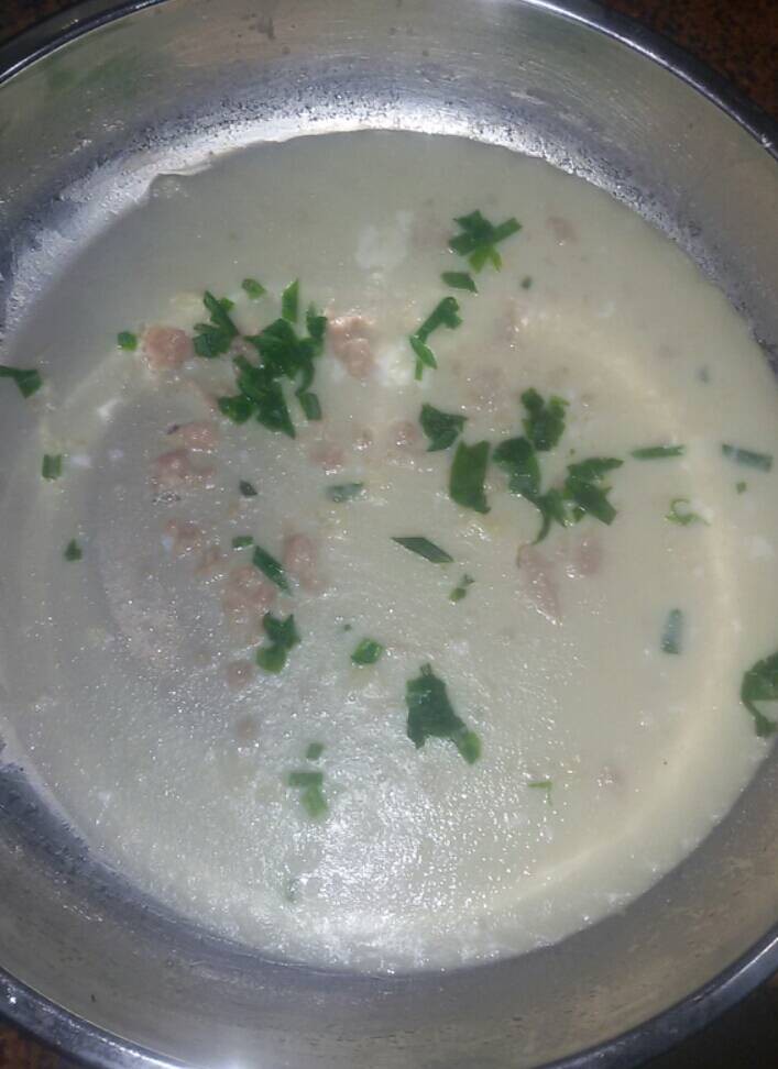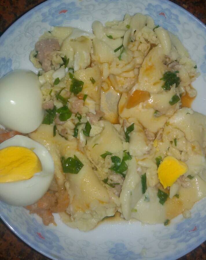 那天看朋友圈的时候突然发现一位老同学在晒自己在家做的广式肠粉,看上去挺诱人的。考虑到我们平时挺喜欢吃肠粉的,所以我也打算向他学习一下,而他也很热情,给我回复了很详细的肠粉做法,还说不明白的可以再问他。 昨天突然起了这件事,然后我就专门买来了粘米粉、面粉和生粉,再加上家里的瘦肉末和葱花就可以做肠粉了。虽然傍晚时我有煮米饭,但由于我想尝试一下自己做的肠粉,所以我就决定先做一盘,结果竟然做也了下面这个样子,失败了!