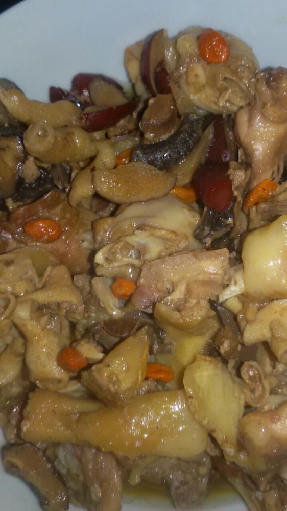因为这冬菇蒸鸡实在太好吃了,越吃越想吃,所以这次我专门向宝爸请教这鸡的做法。他说首先把斩好的鸡肉都用酱油、食盐、生粉和适量的花生油腌几分钟,然后再加入一些泡好的冬菇,然后再加入适量的红枣(去核,切片)和枸杞子,当然还要加入适量的生姜片了,然后直接放锅上面清蒸至熟即可。因为这鸡的做法也不复杂,所以我也就记下了。希望我下次也能做出这么鲜美的冬菇蒸鸡。