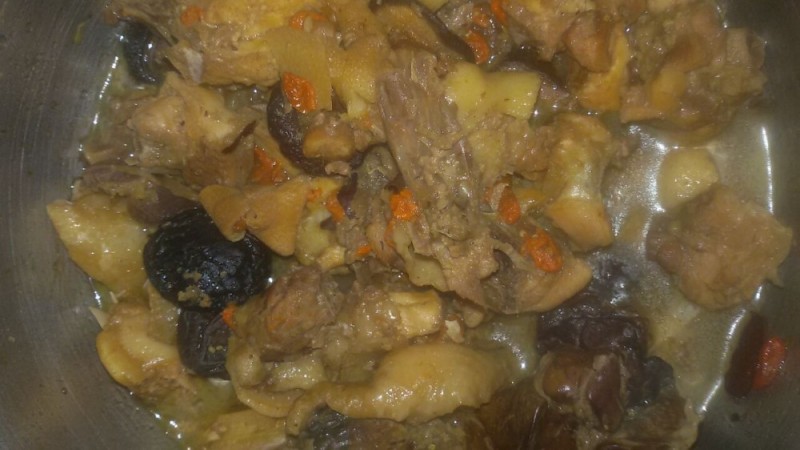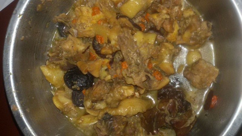 看,这就是宝爸做的冬菇蒸土鸡了,宝爸一处理好鸡他就迫不及待地清蒸上了,虽然它还没出锅,但整个屋子里都飘着鸡的香味,引人食欲。平时我们中午一般是12点才吃午饭的,可哪天大家都很想吃这鸡,所以11点左右我们就已经吃午饭了,可见这鸡有多么的诱人了。