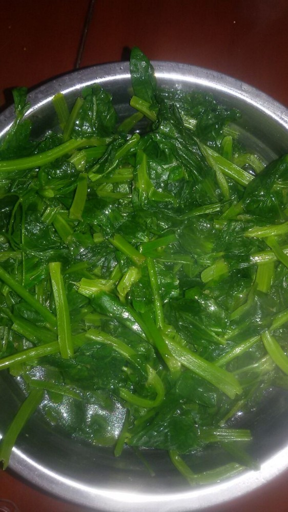 大家知道下面这盘是什么蔬菜吗?我们这的人都叫它豆苗,就是类似于荷兰豆的那种树,主要是吃它的叶子和茎,它的丝我们都不吃的,一般把它去掉,当然,也要把豆苗的老茎折掉,然后再煮。因为豆苗怎么煮都是很好吃的,而且清香怡人,所以我习惯用它来清水煮,这样的话既保留豆苗的营养,而且豆苗也非常好吃。