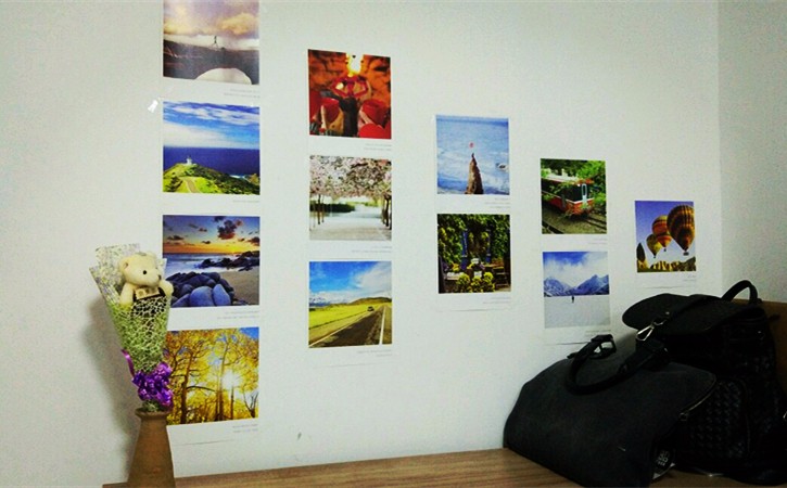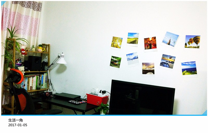 贴完以后瞬间感觉温馨了很多。整个房间的格调也有了一些变化。一点小小的用心,就能改变很多。看着房间里一件件增添的家具,一点点朝着自己理想的样子贴近,忽然很温暖。