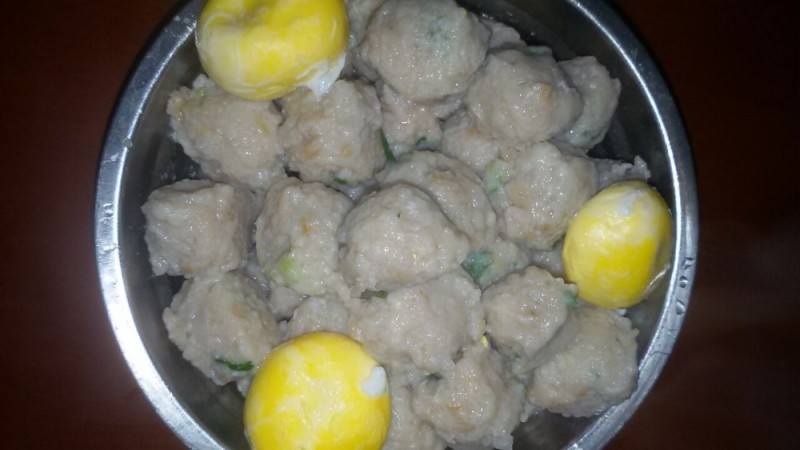 这也是宝爸煮的猪肉丸,第一眼看到肉丸上面的三只黄色球形时,我还以为宝爸新研发出黄色的肉丸来呢,后来我吃的时候才知道它们是被取了鸡蛋清的鸡蛋黄。虽然蛋黄里面什么味道也没有,可平时不爱吃蛋黄的小不点竟然很喜欢吃,一顿就吃了两枚这样的蛋黄,真的太意外了!