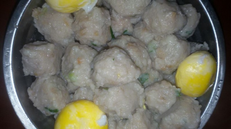 买材料回家后,我就去陪小不点了,然后把厨房交给宝爸。一个半小时左右宝爸就说肉丸和鱼丸做好了,我分别尝了一只肉丸和鱼丸,感觉味道还不错,尤其是鱼丸,口感竟然与外面卖的差不多,但味道又比外面卖的好吃一些。不知道是因为宝爸的手艺好,还是因为里面加了马蹄和白萝卜干的缘故。
