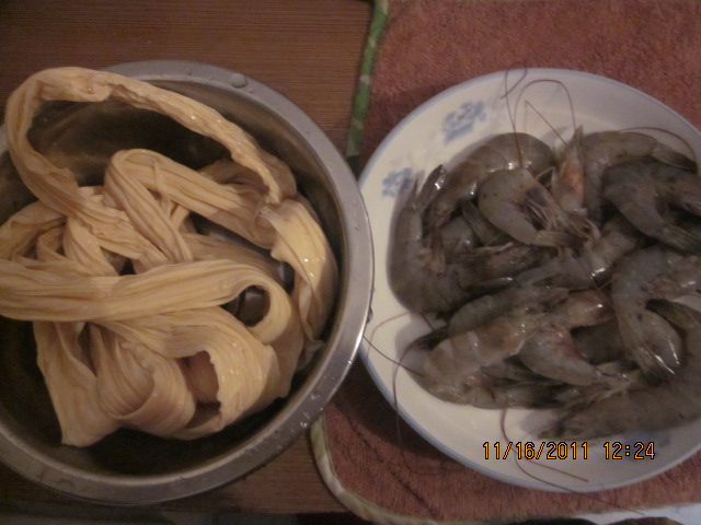 说起虾那可是我和宝宝的最爱,一般去我们这边的干锅居或是鸭掌门的都会要一份香辣虾。而我的另一个朋友做的香辣虾不同于饭店的做饭,但味道却很不错。所以我也就跟着学习学习,就这样只要看到有关虾的做饭我都会留意一下。前段时间在陕西三套看到有做一道腐竹蒸虾,看的我心痒痒。这两样食材都是我最喜欢的,隔天我就试着做了,结果做出来的味道还真是不赖呢。