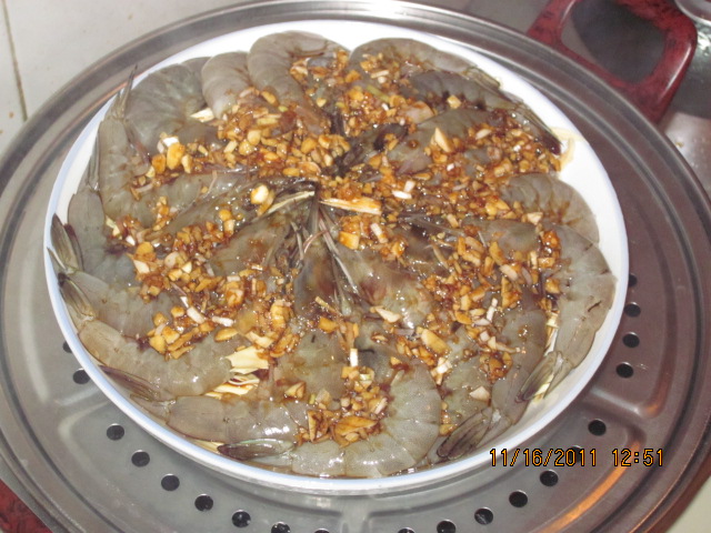 说起虾那可是我和宝宝的最爱,一般去我们这边的干锅居或是鸭掌门的都会要一份香辣虾。而我的另一个朋友做的香辣虾不同于饭店的做饭,但味道却很不错。所以我也就跟着学习学习,就这样只要看到有关虾的做饭我都会留意一下。前段时间在陕西三套看到有做一道腐竹蒸虾,看的我心痒痒。这两样食材都是我最喜欢的,隔天我就试着做了,结果做出来的味道还真是不赖呢。![]() 先将腐竹用冷水事先泡发,虾要剪掉虾须挑掉腥线备用。 将泡发好的腐竹挤掉水分,然后斜刀切寸即可。将腐竹装盘备用 将处理好洗净的虾摆盘 将葱姜蒜剁碎后放入容器中,放一勺生抽,两勺蚝油,三勺料酒及少许盐拌匀 将调好的汁浇在虾上,入锅隔水蒸八分钟左右即可。 ![]() 成品出来了,看着很诱人吧,味道还真是不错呢虾的鲜味配着腐竹的香味及蒜香味真是美味啊。那么多下又三分之二都被宝宝吃了,就这宝宝还吵着要吃呢。可秋冬季节本来就干燥,所以虾吃多了也会上火的,还是要控制控制比较好。 ![]() 亲们要是有什么其他做虾的方法也多多分享哦,这样我们大家彼此学习彼此分享都会学到更多的美食呢! 本作品未经作者许可不得转载,转载请征求作者意见。擅自转载使用,将保留追究其法律责任的权利! 评分记录