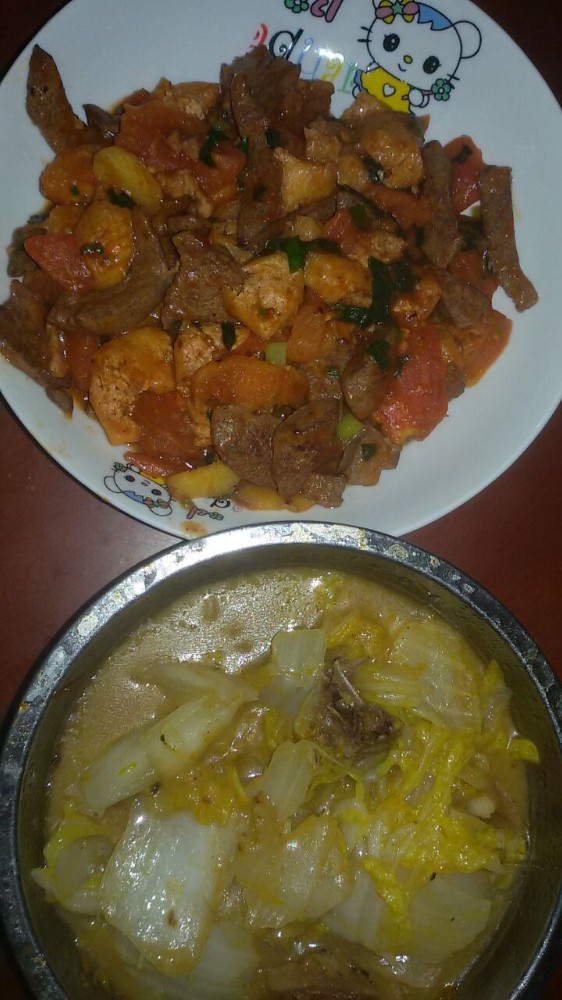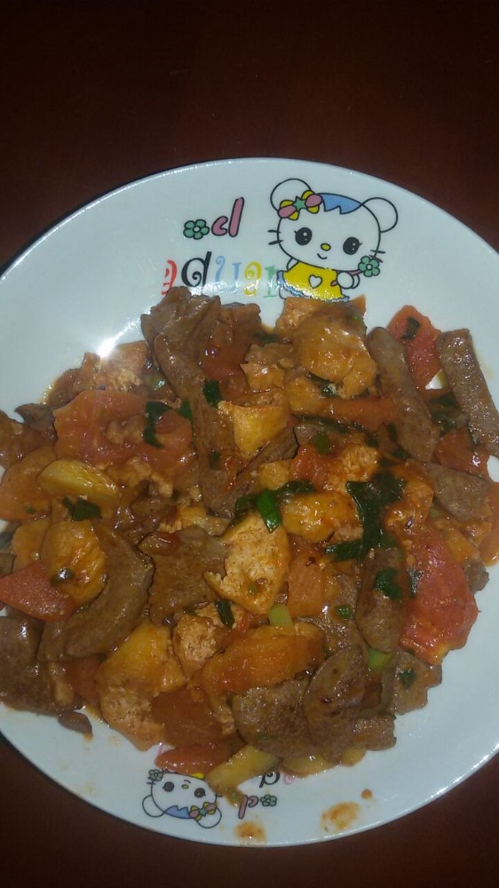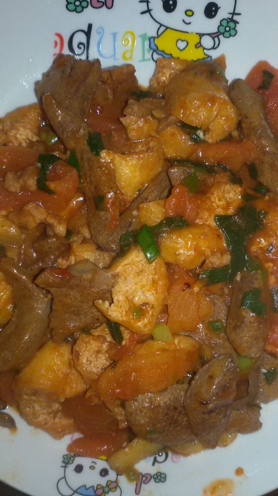 我们的晚餐除了大白菜这道菜以外,还有一道另类的菜——西红杮油豆腐炒猪肝。话说虽然猪肝有补铁等功效,但我们一家人都不太喜欢吃猪肝的,所以我人已经好几个月没吃过猪肝了。可那天与小不点一起去买肉肉的时候,小家伙竟然指定要妈妈买猪肝,然后我就买了两元钱的猪肝回来了。想不到两元钱的猪肝有很多,然后我就打算把它们分为两顿来吃了。