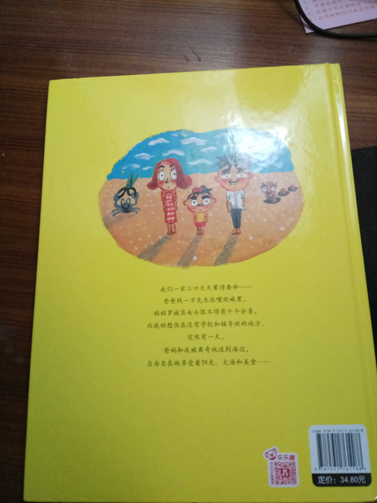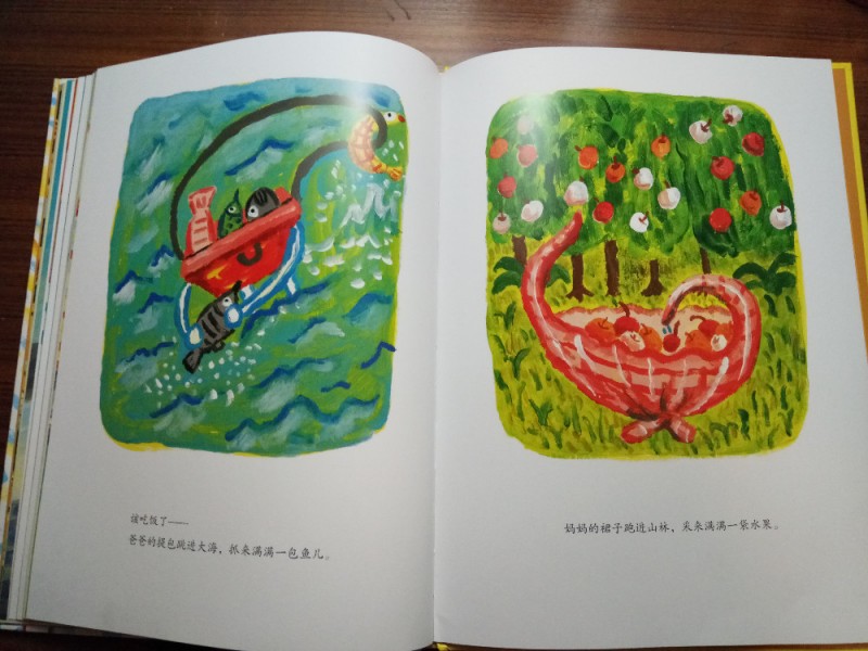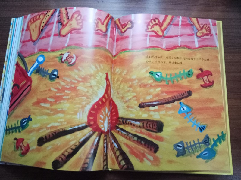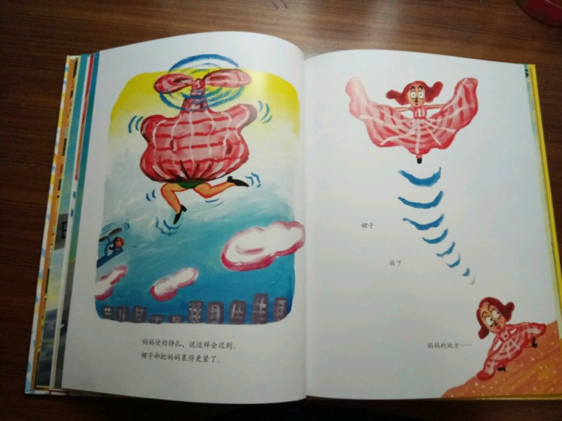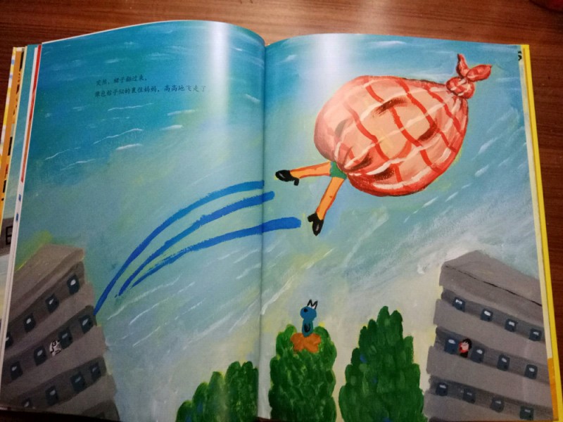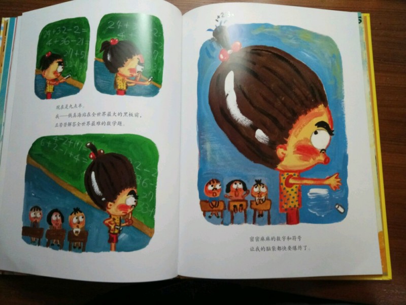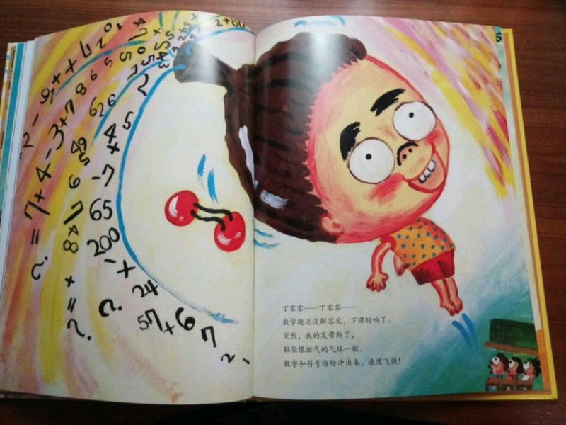 ![]() 《爸妈和我的意外假期》是由韩国作家金高银著、中国人薛舟翻译的一本绘本书。它是1月17日收到的,是一份临近小年送给我的意外礼物,更是送给刚刚考完试后要放寒假的儿子的意外大礼,它很是应景应心。 儿子捧着这本跟A4纸一样大小的硬壳纸板书,很是兴奋,表示”看书的名字和封面上的画,这一定是本很好玩很幽默的书!“。我让他先别打开书,只看着封面猜猜书里的内容。---------玩一把看画直觉感观小游戏。 儿子细细地看着封面,好一阵后,表示他的感觉有三点: 1、画面上是一家三口,爸爸妈妈和小女孩。他们全家都被绑架了,但是绑架他们的人不是坏人,因为只绑了他们的腰,没有绑着他们的手和腿。爸爸妈妈对这个绑架不开心,因为爸爸在反抗而妈妈都哭。但是,小女孩很高兴,她的眼睛都瞪的溜圆,还笑睐睐的。 2、他们被绑架的时候是夏天,因为他们分别穿着裙子和短袖衣服。 3、这个绑架的故事应该很好玩,因为画面颜色很漂亮,是亮亮的黄色让人感觉不害怕,而上面的画感觉像是我们小孩子画的一样,很夸张和搞怪,很像漫画,让人看了就感觉很好玩很开心。书的名字写的也很好玩,看起来字都像在跳舞一样。 儿子总结:他感觉这本书应该是一本讲爸爸妈妈和小女孩不小心被别人绑错了架,变成了意外假期的搞笑漫画书。------很欣慰,儿子猜的虽不算中但也算是很靠谱了。骄傲!儿子的想象力还是很具有一定发展空间和潜力的嘛! ![]() 猜想完封面,我们开始打开绘本,逐页翻阅,让他自己来领略故事内容。读法还是如法炮制,先看画面自行猜想画面内容,讲述自己臆想故事后,再来读相关文字介绍。然后再对照文字细看画面,最后全书一起通读一遍。 如此,在一猜二看三通读的阅读下,粗粗看来简单的绘本画面就像在显微镜下抽丝剥茧般,变得处处细节林立,擘肌分理了。 钱 儿子指着画面上拥挤的人群里大多数呆板无神的眼睛,特别是人群中一位站立着闭着眼睛只管睡并睡出大大的鼻涕泡泡的仁兄,乐的哈哈大笑,并深深地表示同情及同感:他自己每天起床上学时,也是有睡不够瞪不起眼的感觉!他每每坐在我的电动车后座上都要闭着眼再睐一睐,原来上班和上学一样,都很辛苦的!并指出,原来韩国人也跟中国一样,都爱看手机(因为这一画面里那么拥挤的人群里就有6个人在看手机,而只有2个人在看书,并且其中1人边看边流泪。儿子对此很是坚定认为这位女士肯定是跟皓妈我一样看的是小说.......... --------得!一个画面推断出二个结论:1、原来本人一直在儿子心目中是这样一个失败的黑色的形象(爱看小说,且爱边看边流泪)。2、所谓的手机党或低头族不光是中国特色,更是全世界共同的问题了。 ![]() ![]() 儿子盯着画面上吃饱喝足并且丢了一地垃圾的红提包,很是好奇:这提包吃的东西是不是都落到了爸爸的肚子里?对面的阿姨看到独自吃东西的提包,只是吓的抱着自己的包盯着提包看,并且爸爸在提包里使劲挣扎和喊叫,提包左摇右晃那她为什么不报警呢?还有火车站售票和卖东西给提包的两个叔叔也是一样,他们看到这样自己坐车买票买东西的提包,都吃惊的皱眉张嘴和挑眉吸嘴,但是都没有拦着提包问一问或直接捉住提包!儿子表示:如果让他看到这样的提包,他肯定是要拦住或捉住的,最少也要好好问问提包的,好不容易遇到一个魔法包必须要好好看看清楚才行! -----------社会生存的压力,让人们只顾着自己和自己家的一亩三分地了。人们对美好未来生活的巨大渴望,使人们只关注于自己眼前能挣到钱,根本无心去管钱的来源和出处,更丧失了人与人之间守望相助的热情和人性。 ![]() ![]() ![]() 关于妈妈的旅行方式,更是搞笑和创意-------妈妈出门前穿上身的花裙子直接反转,把妈妈上半身包裹成邮包直升飞机,直接降落到了爸爸所在的海边。 ![]() ![]() ![]() 而书的小主人公----我,钱真海,出行的方式可比较悲惨。在学校里正跟全世界最难数学做斗争的时,下课呤声让充满了密密麻麻的数字和符号的大脑袋像泄气的气球一样,一路撒着各种数学和符号,最后也掉落在爸爸妈妈所在的海边。 ![]() ![]() ![]() ![]() 一家三口在海边胜利会师了。于是,他们三人都脱的光溜溜,在海里和动物们自由地、尽情地、亲密地嬉戏玩耍,很是开心。可是,人玩的再开心再久,也还是有基本的生存需要呀,比如吃饭和睡觉。而爸爸妈妈的飞行工具------提包裙子很是厉害。他们虽然不打招呼就把爸爸妈妈赤手空拳带了来,到了吃饭睡觉时间时,他们又变身了,分别跑到海里和山林里,抓来了一包鱼儿、一兜水果,最后,裙子又化身成了大睡单,一家三口美美地躺在裙子上呼呼大睡。公司、学校、家,统统都忘掉--------幸福生活就在当下! ![]() ![]() 儿子于绘本的细节推敲翻阅中,在哈哈大笑的幽默漫画中,品读出了上班人群的拥挤和疲惫,品读出了人群中的自顾自的忙碌和冷漠,更从中读到了大人也跟孩子一样”脱的光溜溜地“渴望着自由,大人也想着远离束缚和忙碌,开开心心地轻松地玩乐。 ![]() 其中,儿子对书中小主人公的遭遇很是同情和羡慕。儿子啧啧有声的感叹和抱怨,“这头脑也是没有治了,还能像气球一样撒气呀!我每天上学小学,做题做作业,脑袋里不光是数字还有汉字和英语字母呢,比她还多还有感觉象爆炸呢,怎么就没有像她一样遇到这样好的事呀?” 是呀,我怎么也没有遇到这种“绑架”