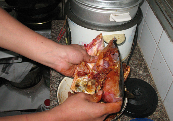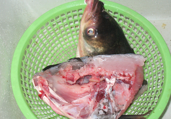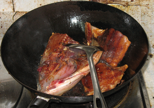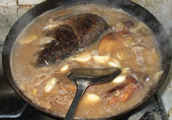 我们烧鱼头的时候,鱼头用盐腌制一下,你们是用酱油摸一下,其它都差不多!正好吃!!